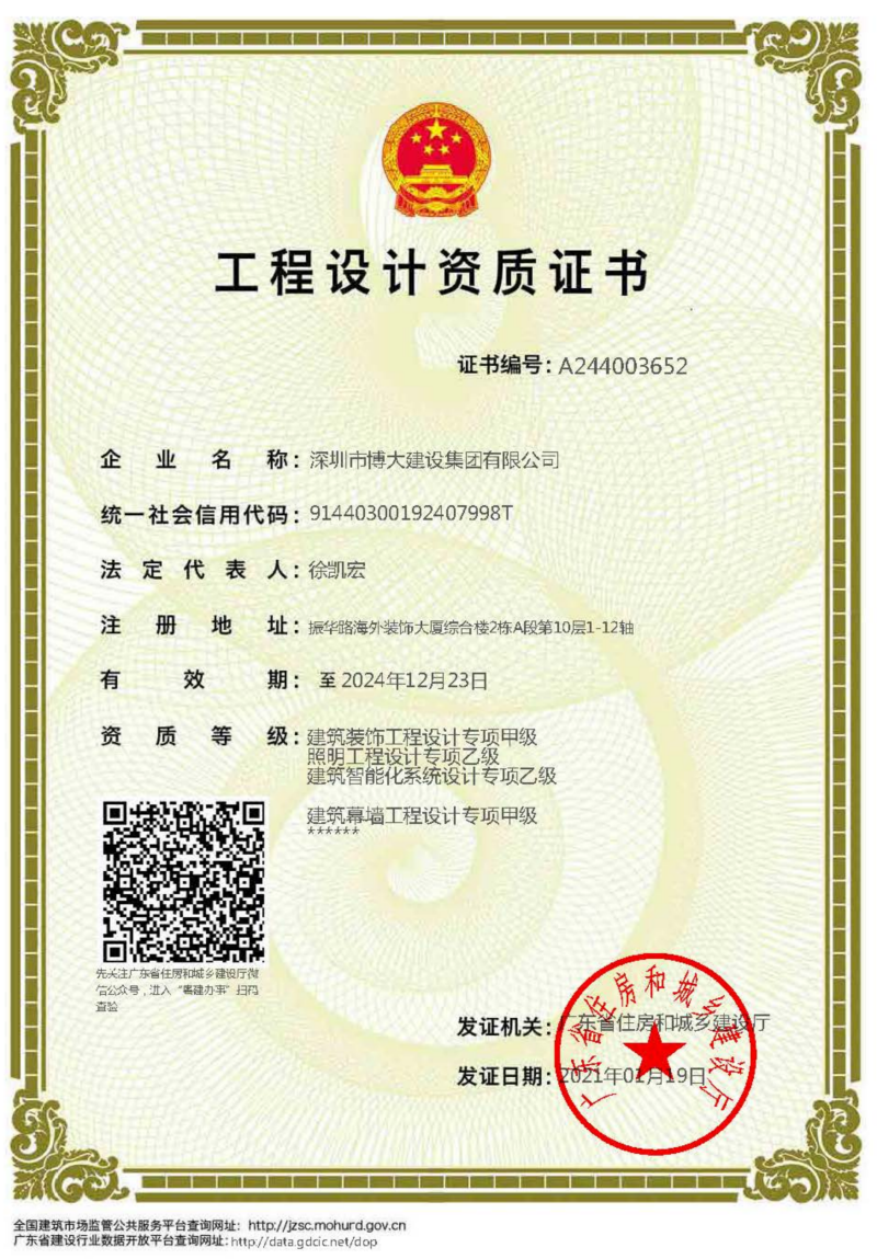深圳市博大建設集團有限公司成立于1996年,注冊資金2.08億元,是一家集設計、施工