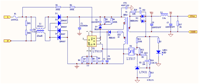 充電器適配器副邊反饋5V* 4A=20W典型應(yīng)用電路圖