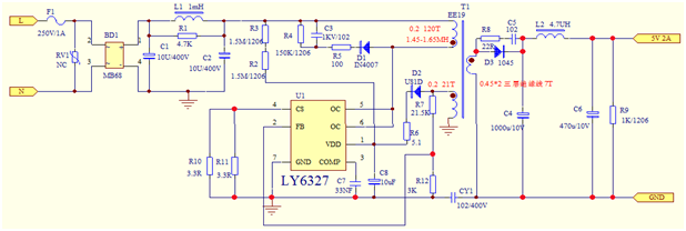 充電器適配器原邊反饋12V* 1A=12W典型應(yīng)用電路圖