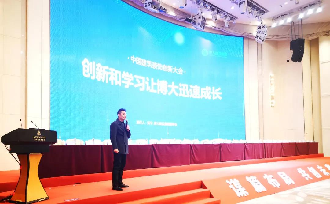 “創(chuàng)新和學(xué)習(xí)讓博大迅速成長(zhǎng)。今天,我主要從三個(gè)方面為大家分享:管理模式創(chuàng)新,建立了利益共享的合伙人機(jī)制;文化創(chuàng)新,打造正能量的企業(yè)文化;持續(xù)學(xué)習(xí),不斷地掌握和運(yùn)用新的策略、工具和方法?!辈┐蟪蔀楸敬稳珖?guó)行業(yè)排名發(fā)布大會(huì)唯一一家建筑裝飾企業(yè)上臺(tái)分享發(fā)展經(jīng)驗(yàn)。董事長(zhǎng)洪宇的精彩演講引起現(xiàn)場(chǎng)企業(yè)家的熱烈反響。