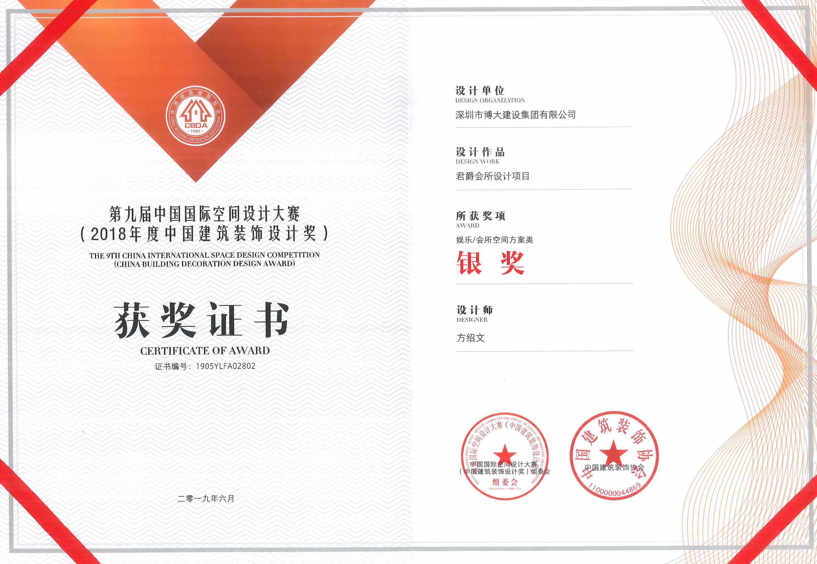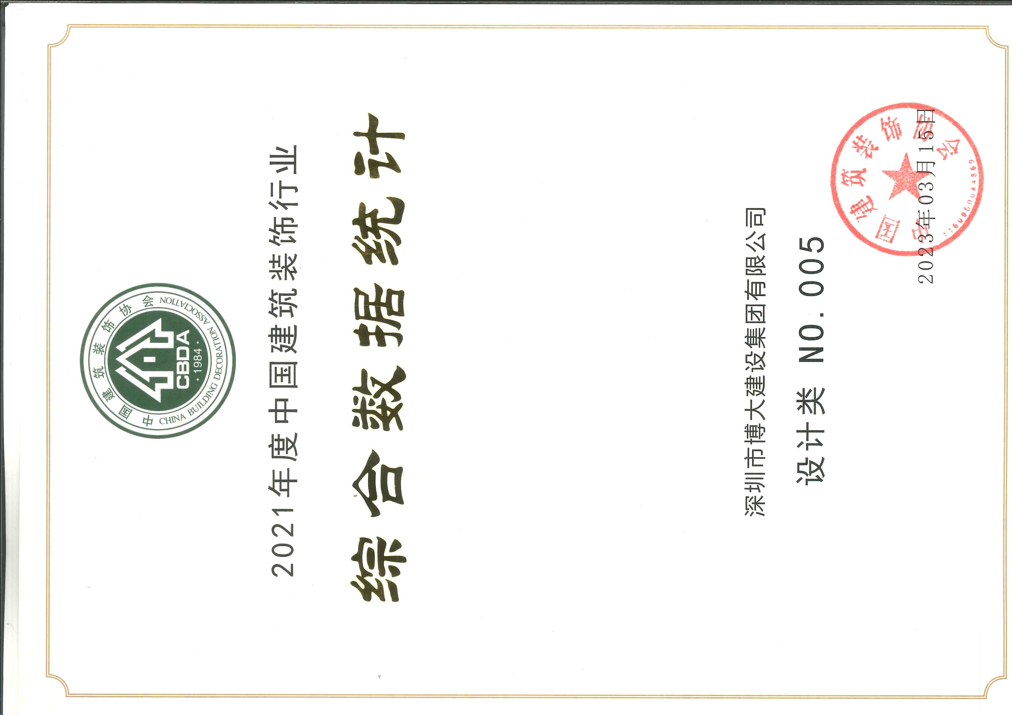 2021年度中國建筑裝飾行業(yè)百強(qiáng)設(shè)計類第五名
