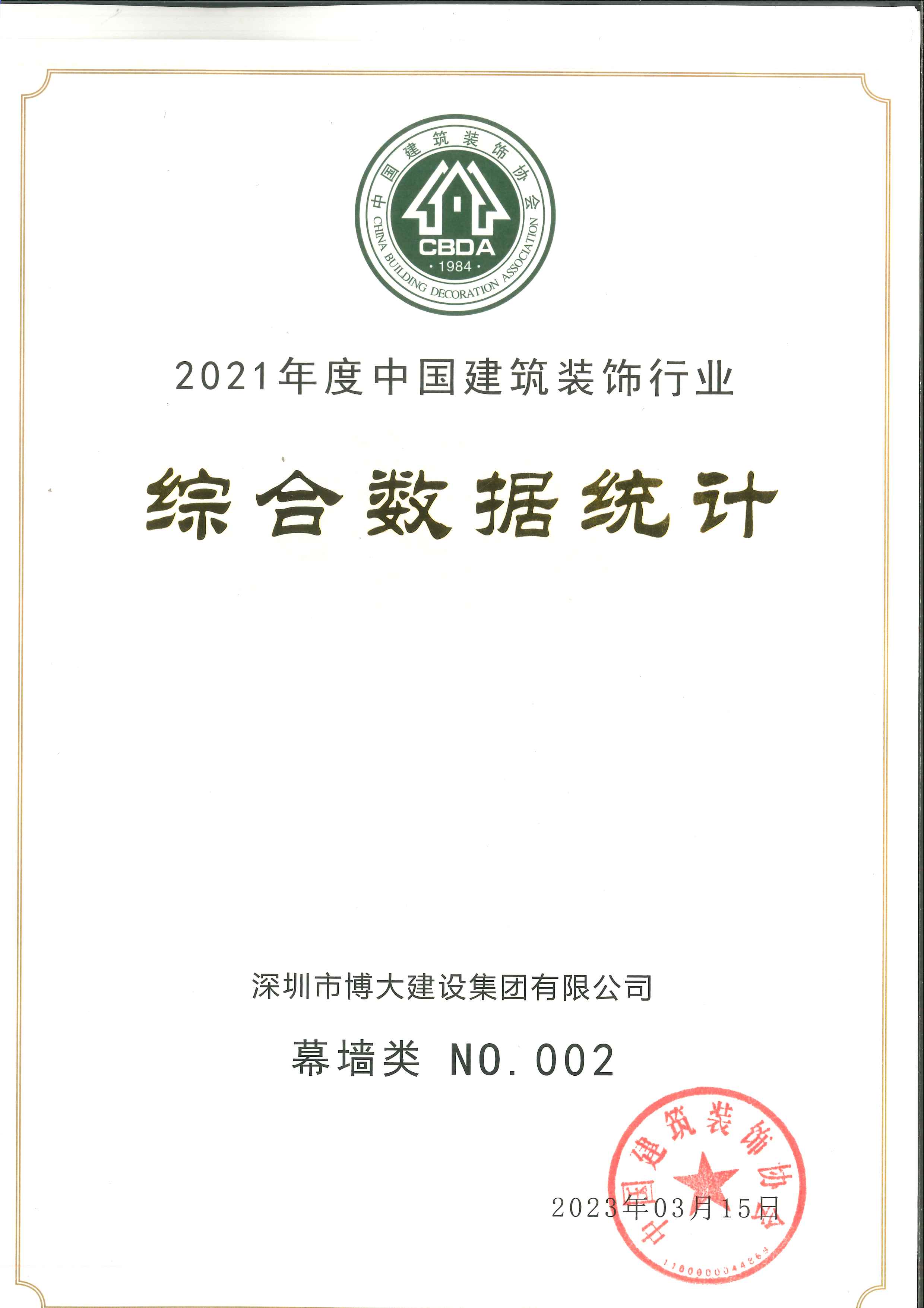 2021年度中國建筑裝飾行業(yè)百強(qiáng)幕墻類第二名
