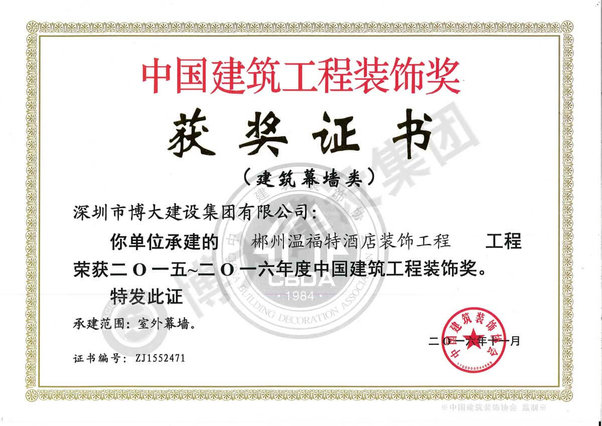 中國建筑工程裝飾獎(郴州溫福特酒店-幕墻)