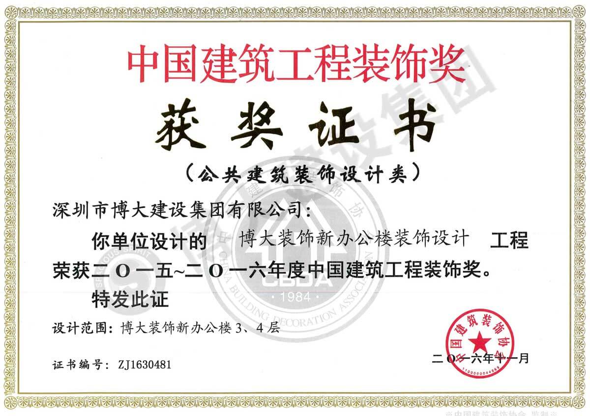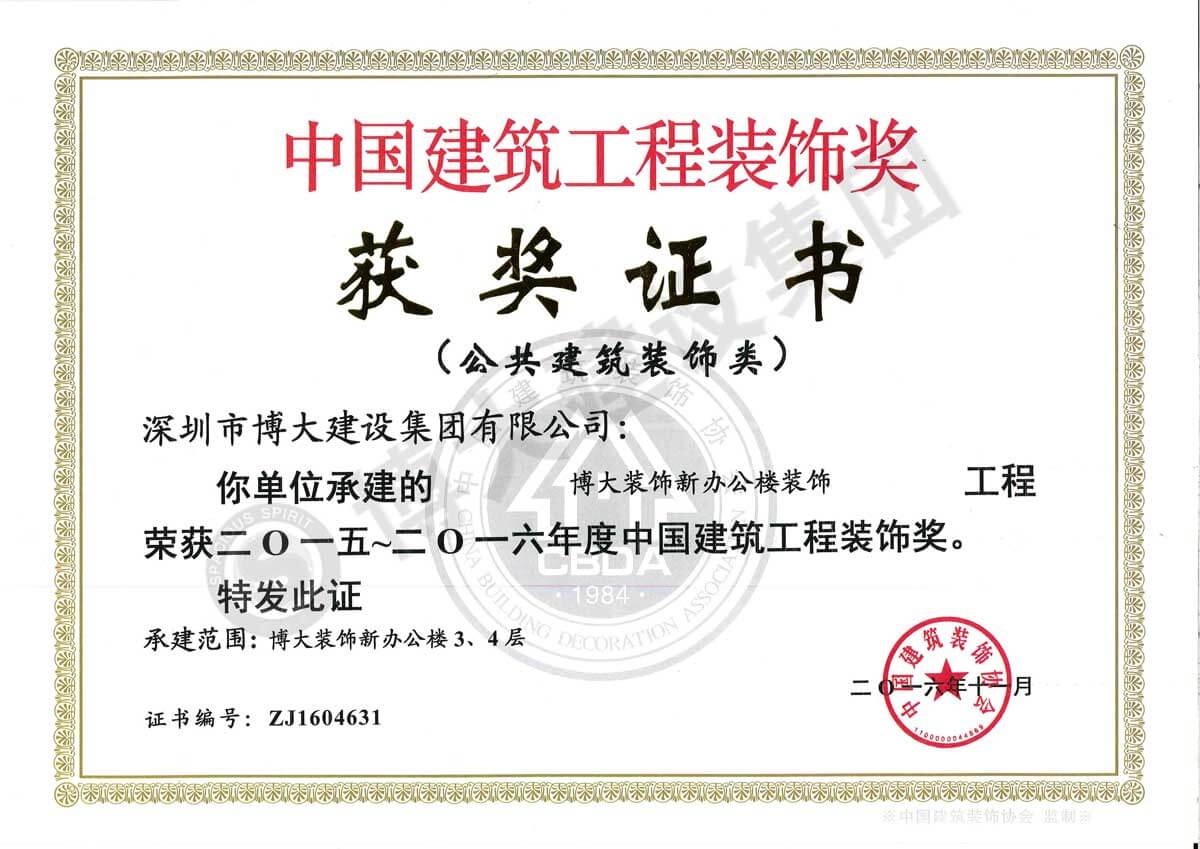 中國建筑工程裝飾獎(博大裝飾新辦公樓-裝飾)