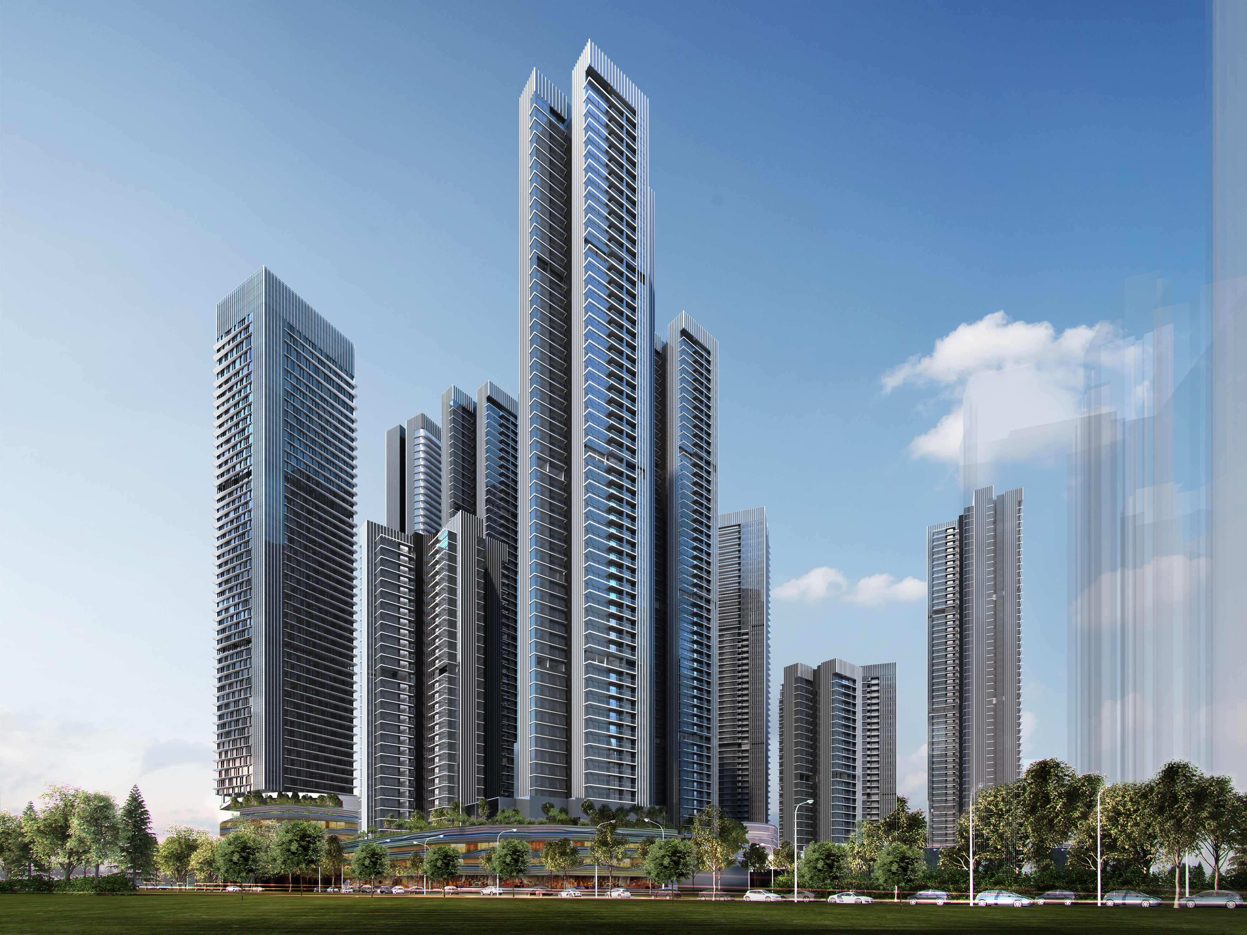 項(xiàng)目位于深圳市羅湖區(qū)愛(ài)國(guó)路與華麗路交匯處西南角,占地面積約6.4萬(wàn)㎡,總建筑面積約69.2萬(wàn)㎡。博大累計(jì)中標(biāo)了共計(jì)10棟超過(guò)200m的超高層幕墻,創(chuàng)造同一項(xiàng)目超高層幕墻數(shù)量的新紀(jì)錄。主要幕墻系統(tǒng)為框架式玻璃幕墻、金屬板幕墻、采光頂、玻璃欄桿及鋁合金格柵系統(tǒng)等。