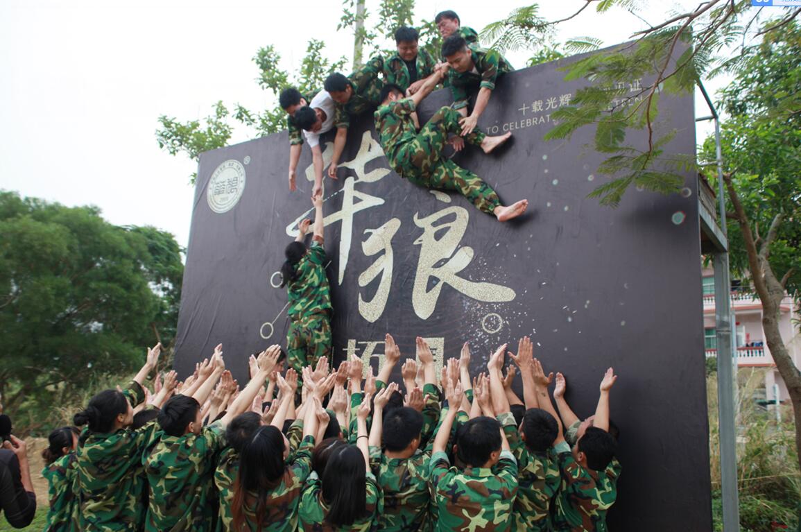 最后的畢業(yè)墻環(huán)節(jié)是最感動我的,我內(nèi)心滿滿的都是感動,大家團結(jié)一致在19分鐘的時間完成挑戰(zhàn),我們都相互驚呆了。是的,沒有克服不了的困難,辦法永遠比困難多。只要大家都在一個頻道上,為一份事業(yè)共同付出努力,總會成功,心在一起才是團隊。最后,感謝我們的老板,感謝公司給了我一個這么難忘深刻的回憶。