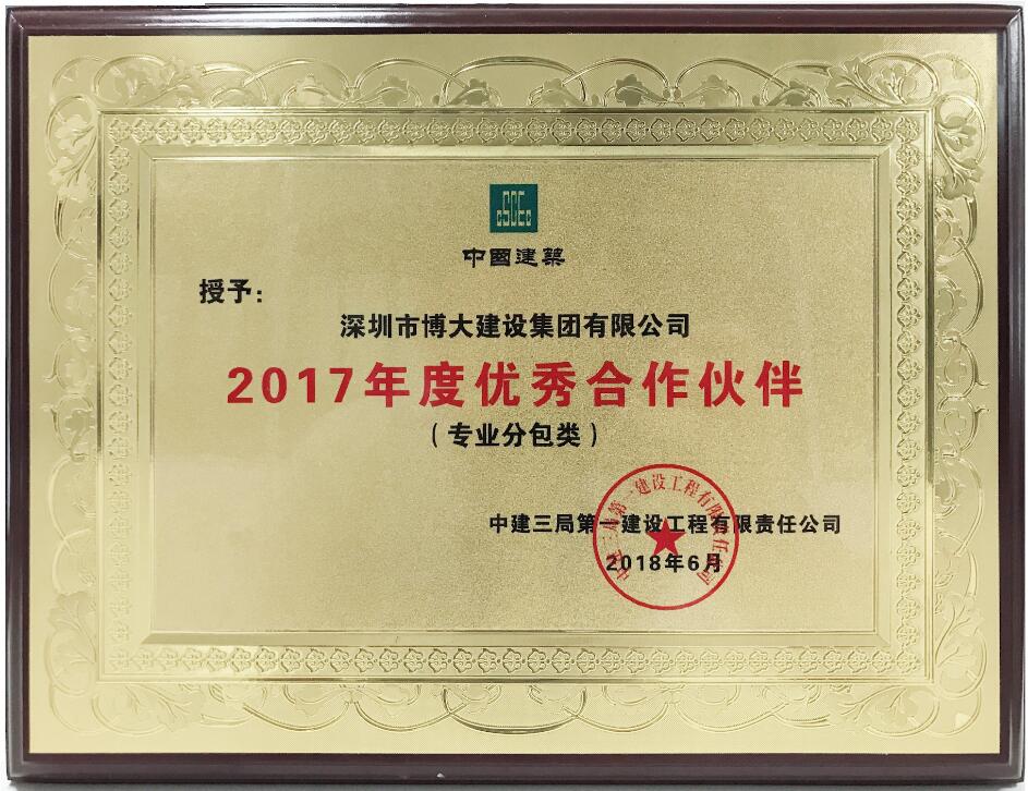 博大建設(shè)集團(tuán)秉承“讓顧客有幸福感”的企業(yè)魂,與遵義中建地產(chǎn)建立起良好的戰(zhàn)略合作關(guān)系,保安全、保質(zhì)量、保工期、保服務(wù)、守合同,以優(yōu)秀成果獲得客戶的高度認(rèn)可,榮獲遵義中建地產(chǎn)2018年度“優(yōu)質(zhì)分供方”。