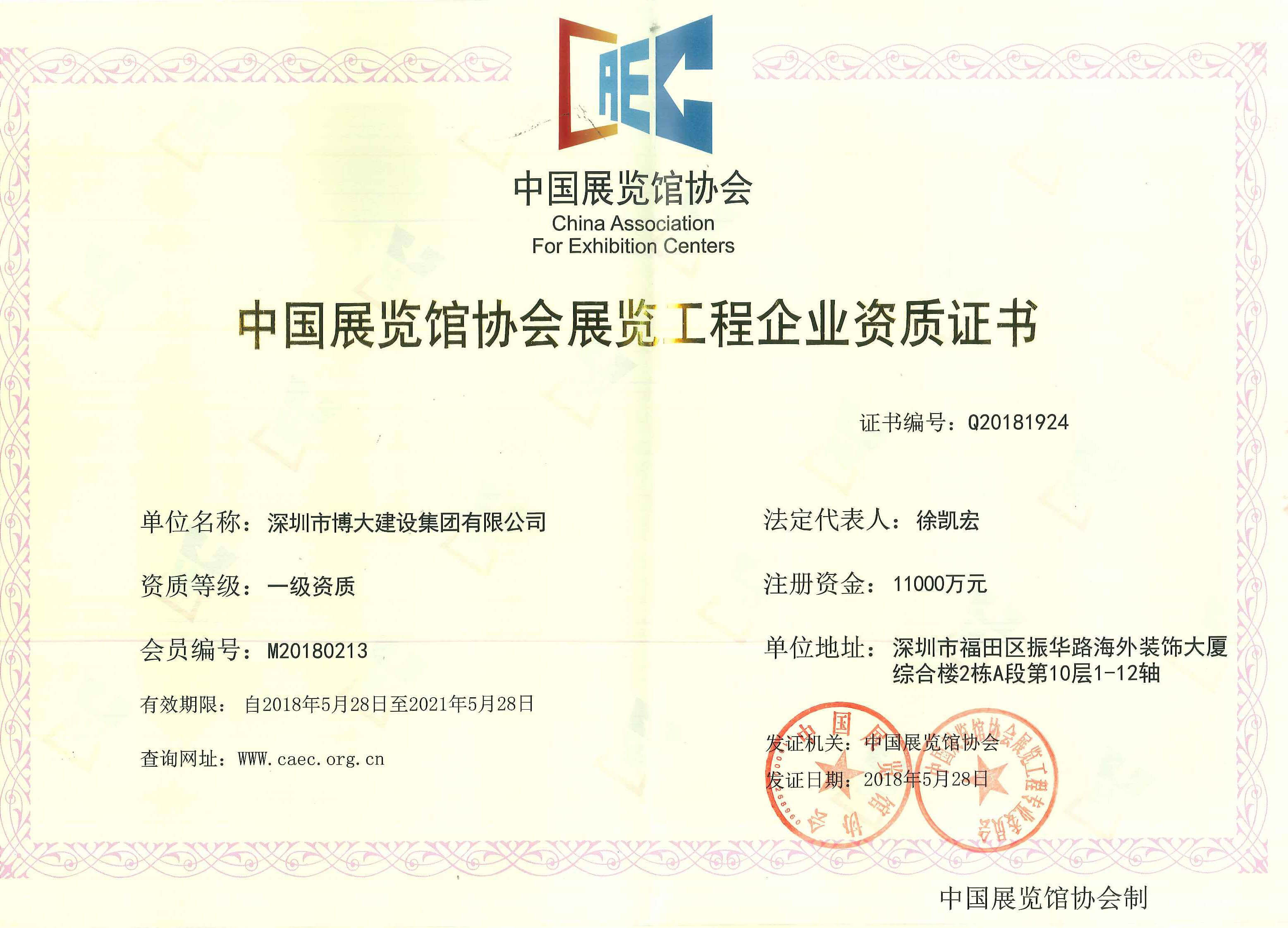 博大建設(shè)集團(tuán)作為行業(yè)最具發(fā)展活力的企業(yè),近年來(lái)以迅猛的成長(zhǎng)速度,得到了越來(lái)越多的關(guān)注和認(rèn)可。在各級(jí)領(lǐng)導(dǎo)的關(guān)懷和全體家人的共同努力下,集團(tuán)資質(zhì)建設(shè)取得新的進(jìn)展:獲得展覽工程企業(yè)一級(jí)資質(zhì),展覽陳列工程設(shè)計(jì)與施工一體化一級(jí)資質(zhì)。