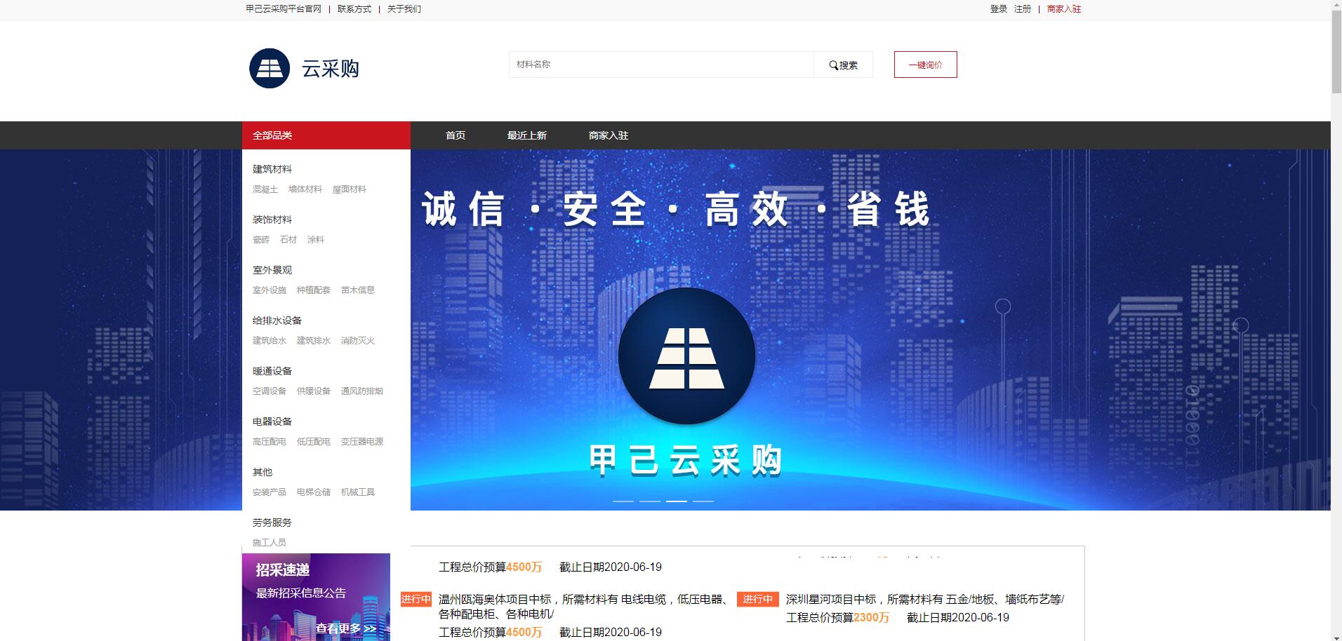 旨在提供“誠信經(jīng)營、優(yōu)質(zhì)優(yōu)價、方便快捷、安全透明”的一站式綜合采購服務(wù),立志成為新時代最好的采購互聯(lián)網(wǎng)平臺! 一句話概括:甲己云采購就是建筑裝飾行業(yè)的“天貓” 甲己云采購平臺網(wǎng)址:https://ycg.jiaji16.com。