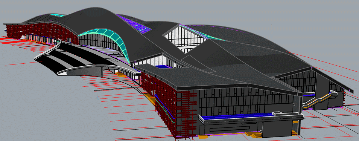 本工程結(jié)構(gòu)設計造型較復雜、幕墻體系層次復雜,博大配備高素質(zhì)的幕墻深化設計團隊,應用三維建模及BIM管理平臺進行幕墻系統(tǒng)空間碰撞檢測,全力保證施工質(zhì)量和效率。