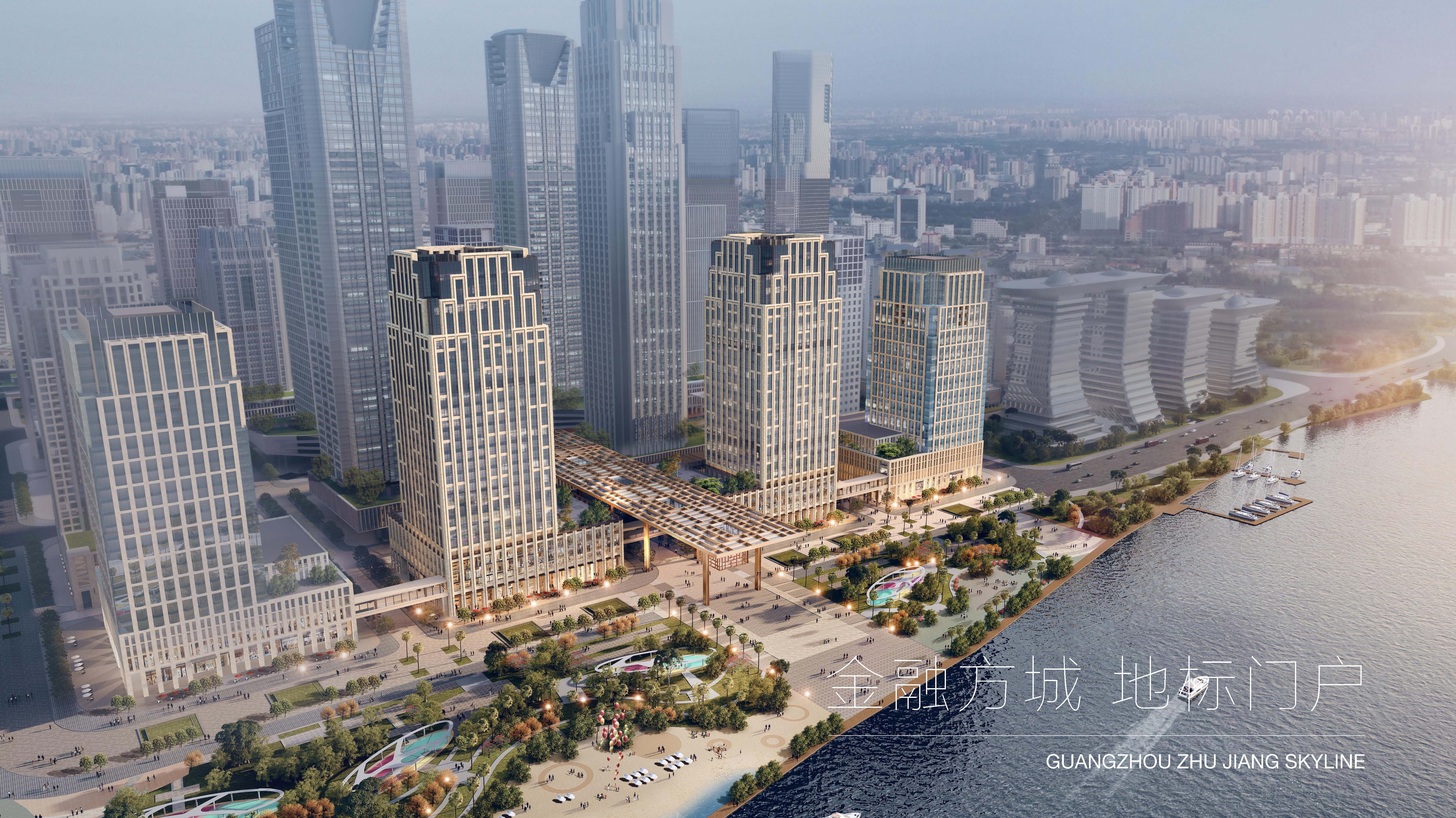 項目位于珠江北岸,緊鄰珠江新城中央商務(wù)區(qū),與琶洲國際會展中心隔江相望,是廣州三大CBD之一的國際金融城。以嶺南傳統(tǒng)騎樓的手法延續(xù)城市文脈,打造了一個類似都市大平臺功能的相互連接的裙房,并在大平臺上設(shè)置了一系列的空中花園、城市觀賞連廊,從而塑造了廣州濱江的門戶形象。