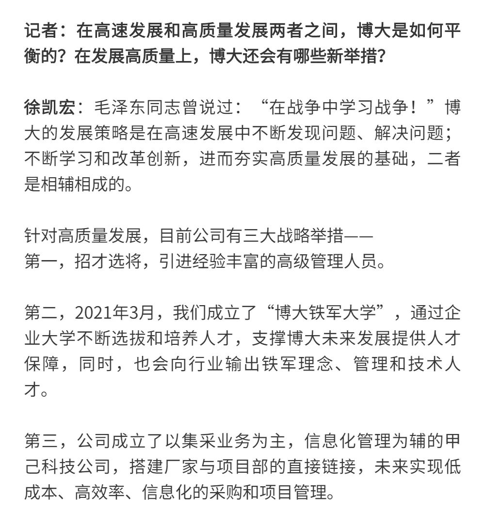 博大以雷霆之勢(shì)迅速崛起,吸引了行業(yè)的高度關(guān)注,行業(yè)權(quán)威媒體《中華建筑報(bào)》數(shù)次深入博大一線調(diào)研走訪,并對(duì)創(chuàng)始人徐凱宏先生進(jìn)行了坦誠(chéng)的訪談,以探討和總結(jié)博大發(fā)展的秘籍,并寫(xiě)就了《進(jìn)擊的博大:從高速到高質(zhì)量的創(chuàng)新逆襲》和《對(duì)話徐凱宏 | 博大正沿著高質(zhì)量發(fā)展道路堅(jiān)定前行》兩篇文章。